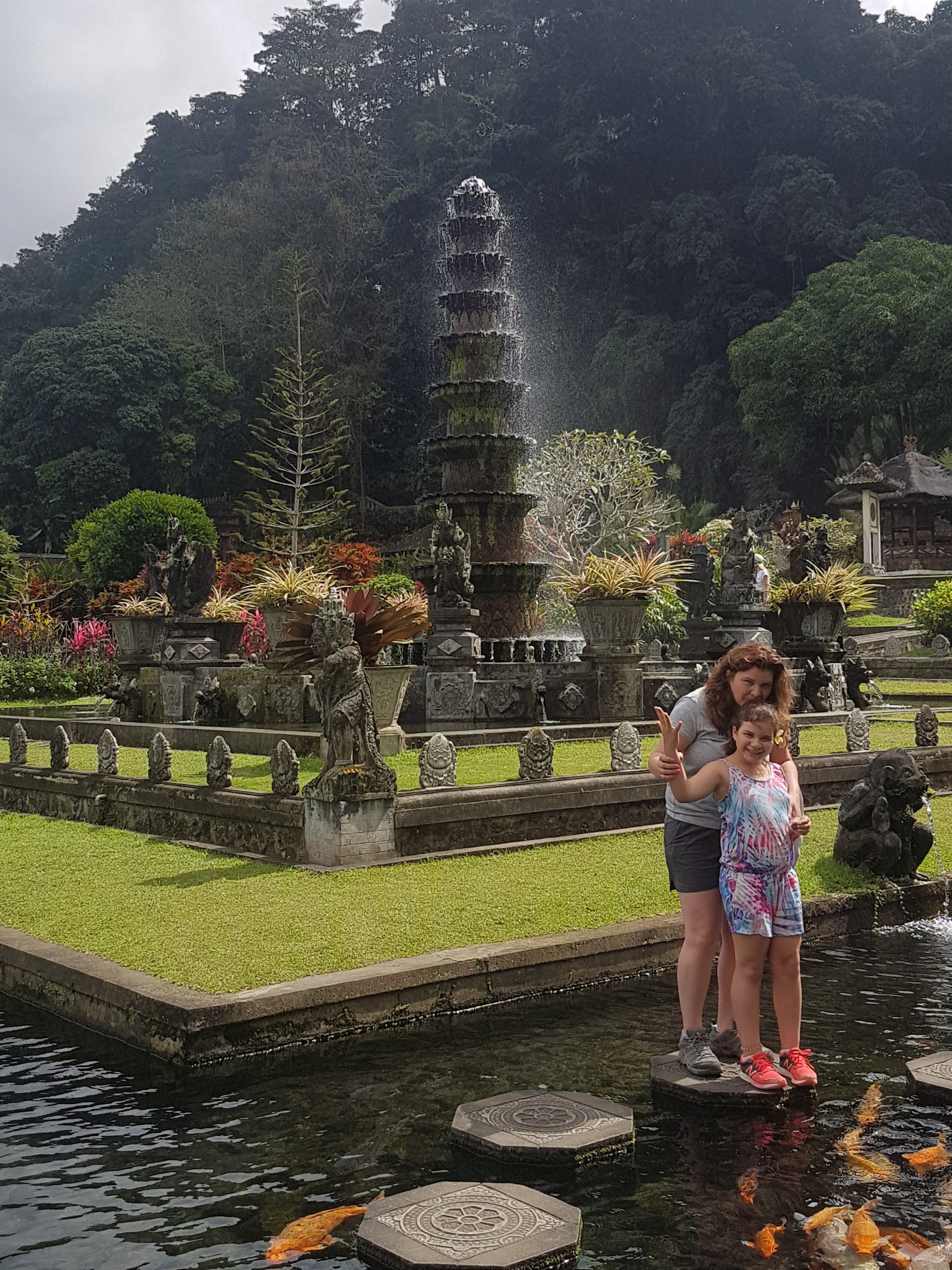 נקודת הטיול הראשונה הייתה המפלים, הדרך לשם מטפסת על צלע הר, דרך ישובים כפריים.. לא לפספס את המילה "מטפסת"! כי כשהגענו, ירדנו מהאוטו והתחלנו לצעוד במורד ההר לתחתיתו שם חיכה לנו המפל הראשון. ואם היינו עוצרים כאן, עוד יכולנו להתנחם בבניין ציון, אבל לא! לא אנחנו!! אנחנו גיבורים…. החלטנו להמשיך גם למפל השני… עליה קטנה שבעקבותיה ירידה גדולה… ואז מתחילות המדרגות שיורדות למטה, כאן המלווה הראה סימנים של "אולי אני אחכה לכם כאן??" גם את הרמז הזה לא הבנו… הוא נותר, מאחור ואנחנו התחלנו לרדת. בדרך אמרתי לבנות לא להיפרד ברגשנות מכל מדרגה, כי ניפגש שוב בדרך חזרה… והמפגש היה כואב יותר.