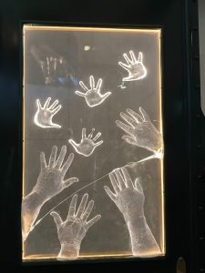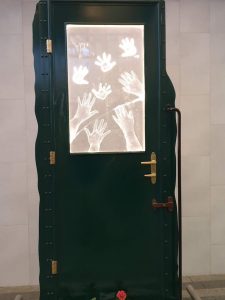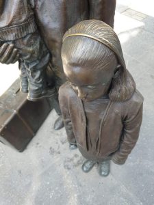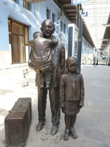 והשנייה, המרגשת מכולן, "אנדרטת הפרידה" דלת של קרון רכבת ועל החלון ידיים מבפנים, ידיים קטנות של ילדים ומבחוץ ידיים גדולות של הוריהם.